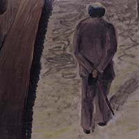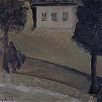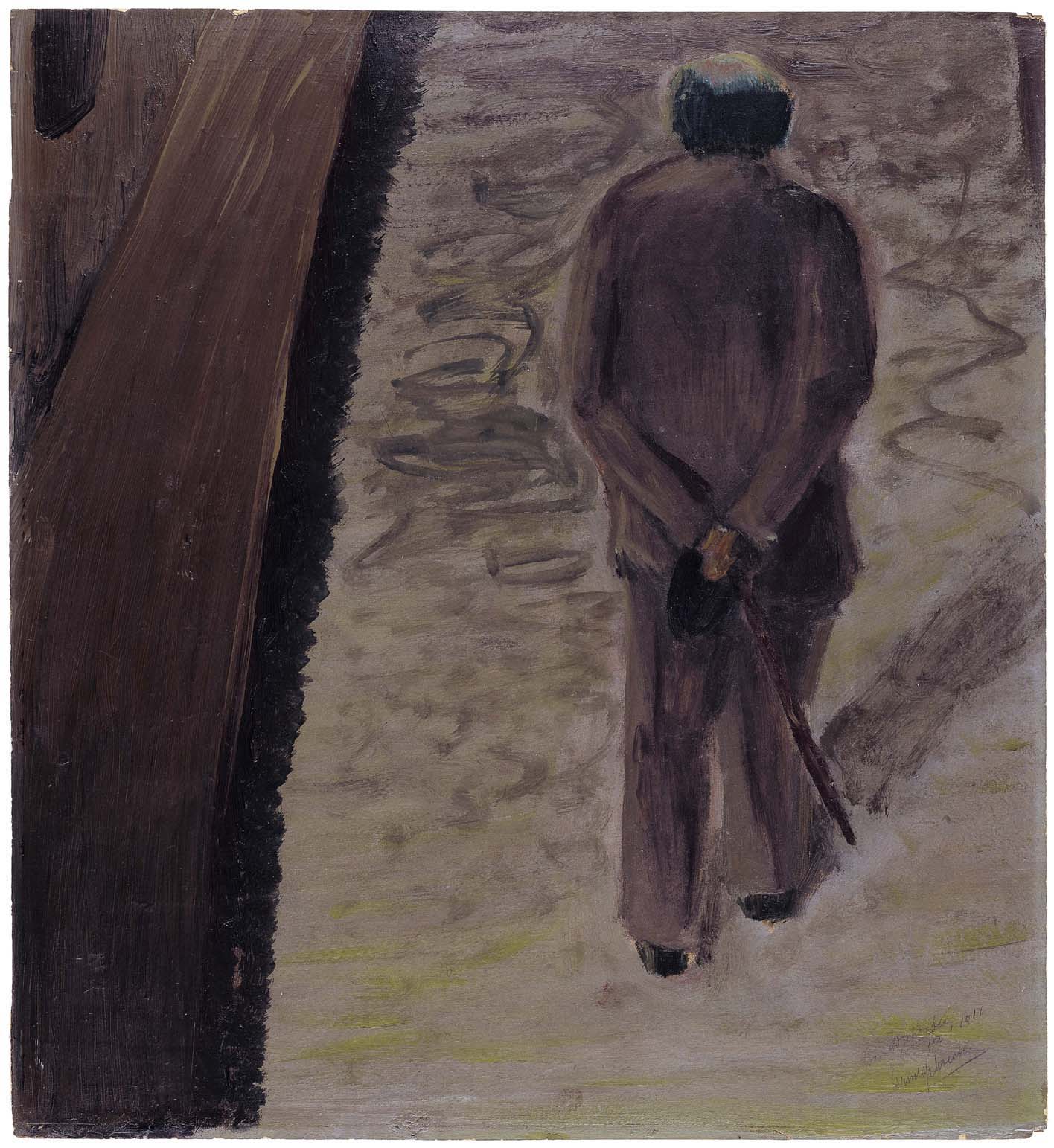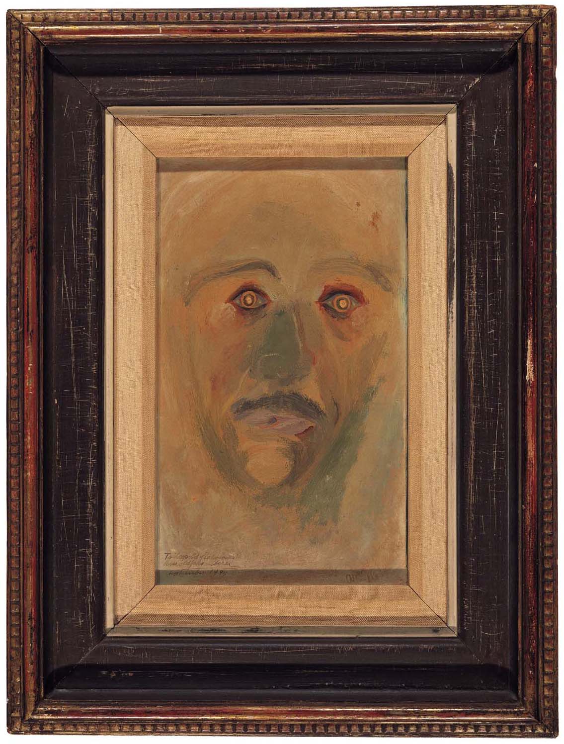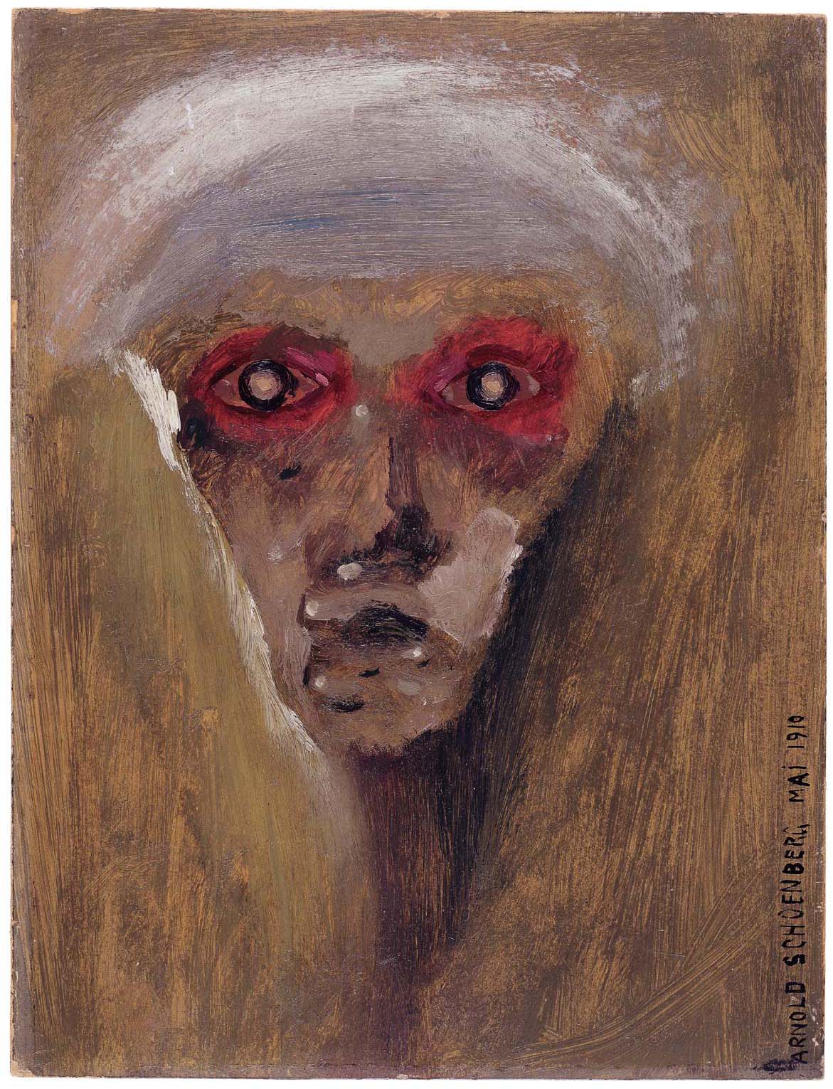 Vier von Arnold Schönbergs Gemälden waren Teil der Ausstellung »Der Blaue Reiter«: Braunes Selbstportrait, Gehendes Selbstportrait, Blick, Nachtstück (1910/11)
