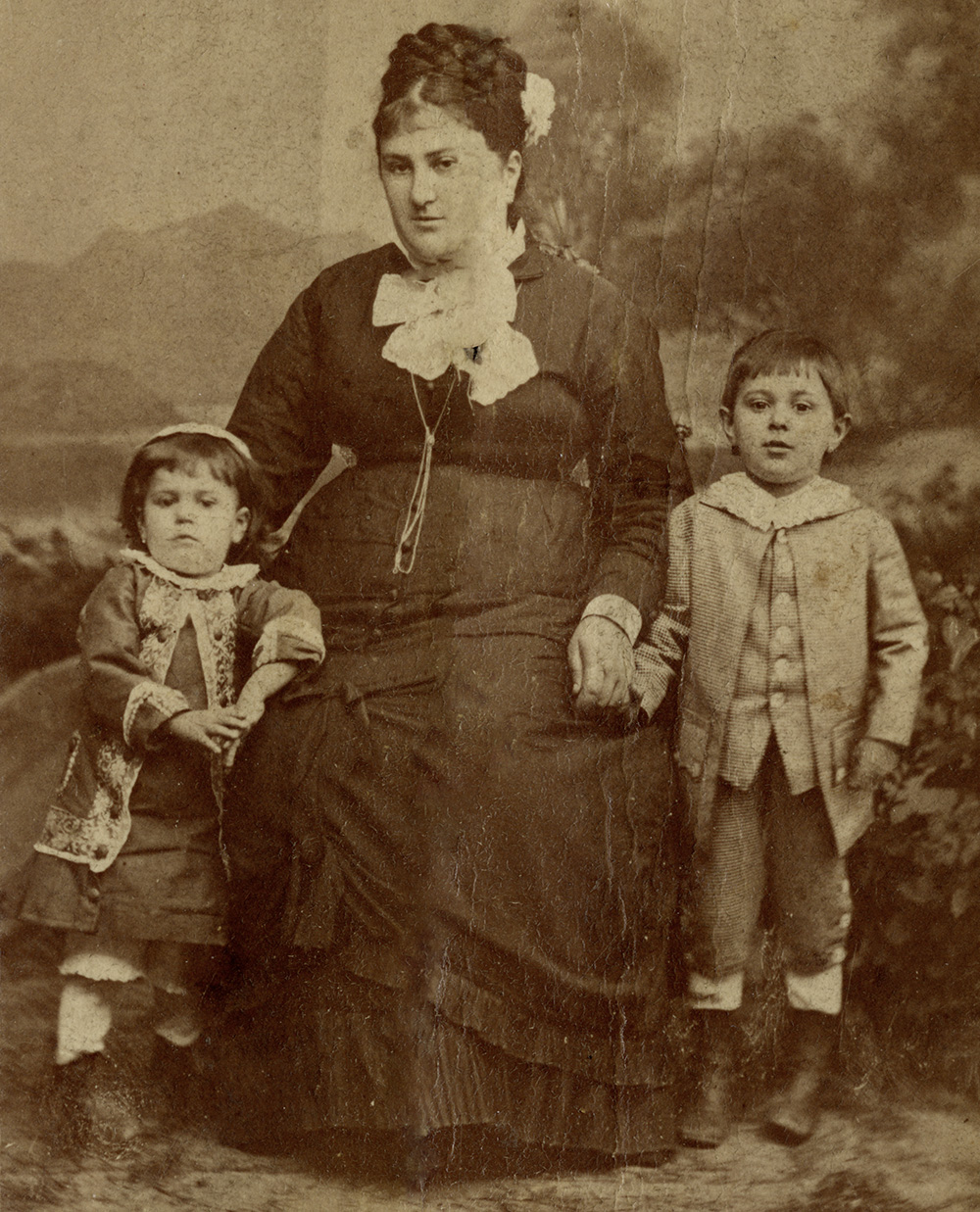 Ein frühes Foto des Komponisten: Schwester Ottilie, Mutter Pauline und Arnold Schönberg, 1879